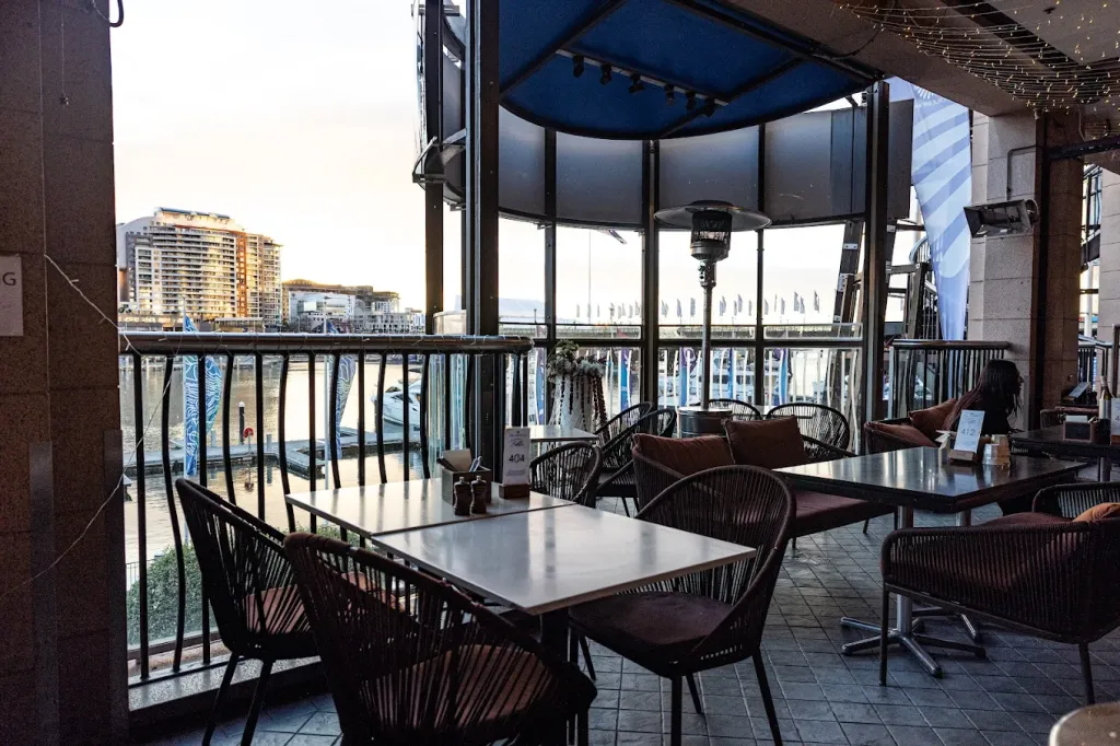 Blackbird Cafe: Waterfront Dining & Cocktails A popular and energetic all-day restaurant and bar with prime views of Darling Harbour. Cuisine: Modern Australian, featuring an extensive menu of pizzas, pastas, steaks, seafood, and breakfast favourites. Drinks: Full-service bar with an extensive cocktail list, plus café-style beverages. Atmosphere: Lively and bustling, with a large outdoor terrace perfect for soaking up the waterfront views. Perfect For: Group bookings, casual lunches, sunset cocktails, and people-watching.